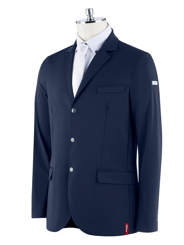 This riding jacket has a zipper under the button row so that the jacket does not open. Furthermore, the jacket has two splits at the back, two pockets and a chest pocket with a zipper on the front.