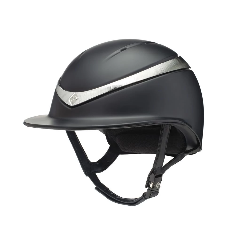 With true innovation in style and technology, the Halo riding helmet makes a real statement in the ring. Comfort is paramount with the unique 360° ventilation system under the halo ring and luxurious padding. As you would expect from Charles Owen, safety is the starting point in the design. The unique Halo lattice harness is designed to encircle the occipital bone at the base of the skull and self adjusts to give a snug and secure fit for your ride.