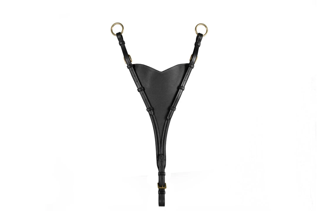 Dyon closed martingale attachment which can be fastened to the breastplate with a roll buckle. Prevent horses from catching the martingale in their mouth and helps the rider to channel the horse. The attachment combines perfectly to the other products from the Dyon Collection line which is also available in our shop.