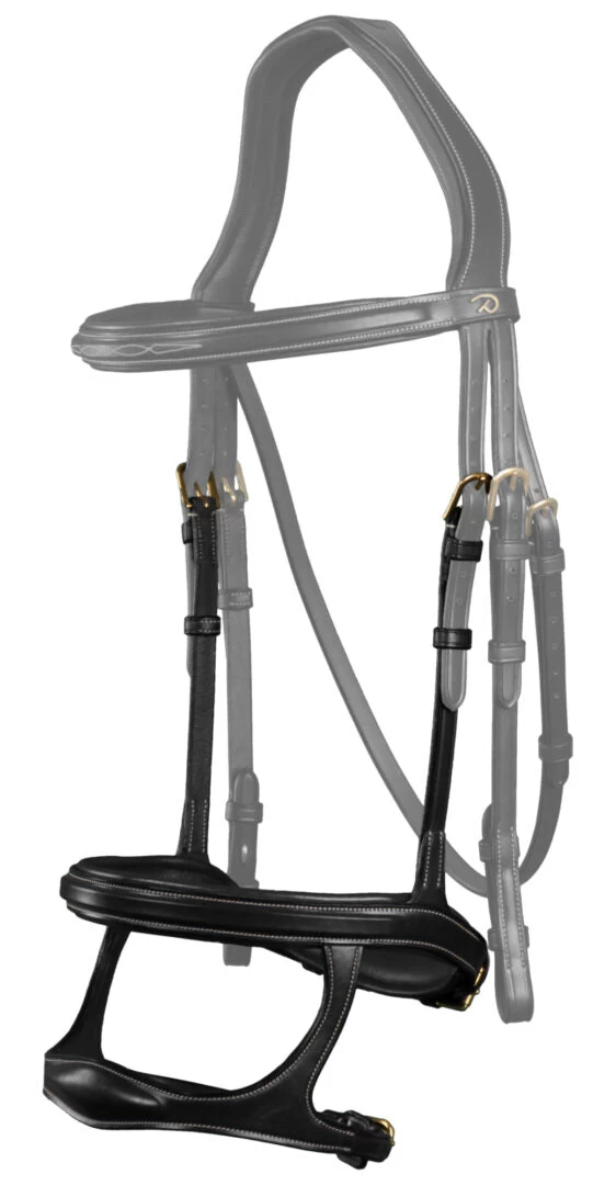 - Padded noseband in English leather, combines 1 cavesson noseband and 1 drop noseband