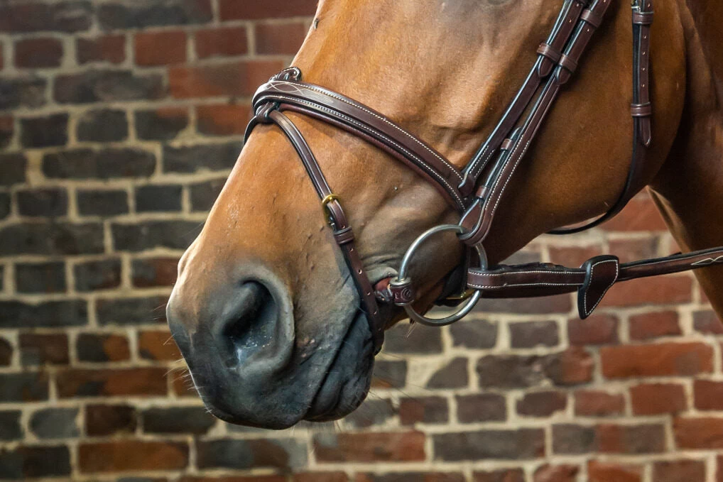 Flash noseband from the Dyon Collection line. The noseband has fancy cream stitching and comes with brass buckles.