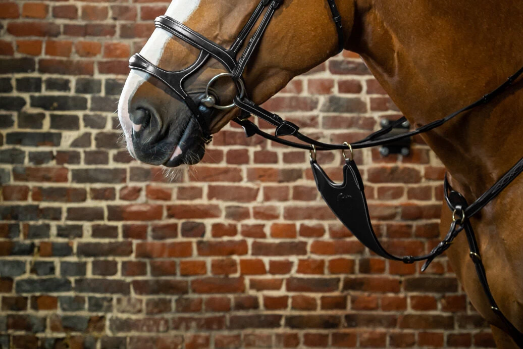 Dyon closed martingale attachment which can be fastened to the breastplate with a stainless steel roll buckle. Prevent horses from catching the martingale in their mouth and helps the rider to channel the horse. The attachment combines perfectly to the other products from the Dyon D Collection line.