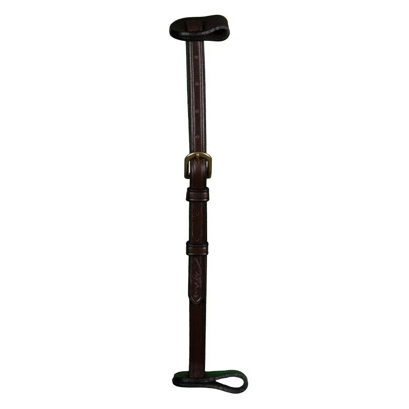 This nose strap from the Dyon Collection has 2 free loops so can be easily put on the Dyon waxed rope noseband for example . The nose strap has brass buckles like the rest of the Dyon Collection.