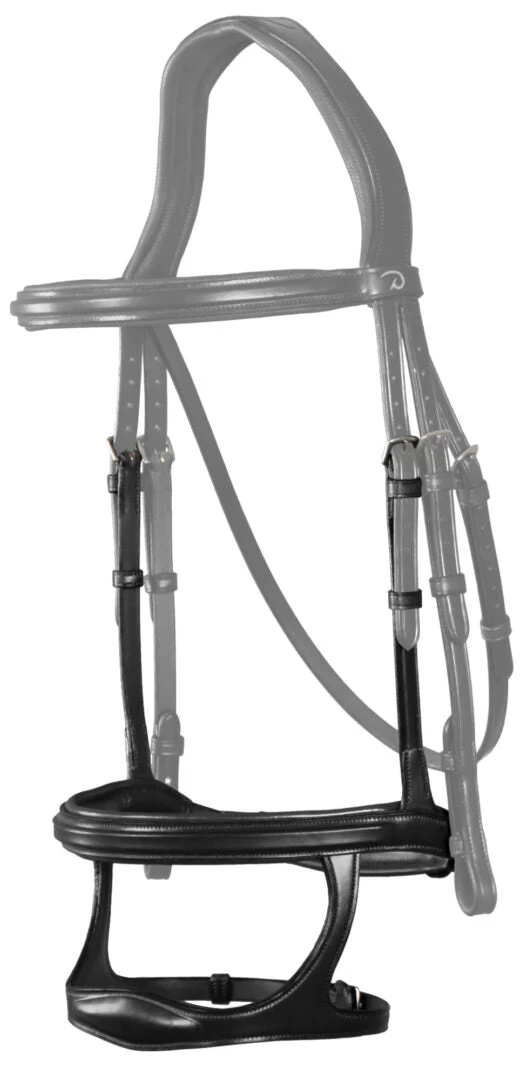 - Padded noseband in English leather which combines 1 cavesson noseband and 1 drop noseband