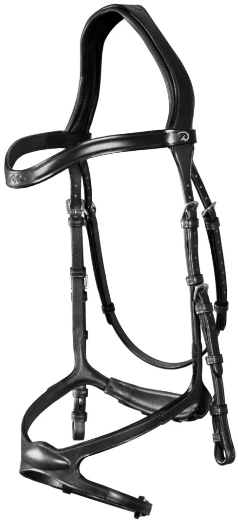 High quality English leather bridle with an anatomic padded headpiece to release completely the base of ears. Advanced design to reduce the pressure on the horses head.
