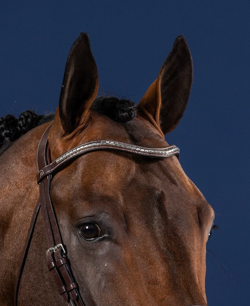V-shaped browband with silver clinchers from the top brand Dy’on. Striking about this browband are the refined design and decorative stitching. The browband is softly padded and matches the bridles of the US Jumping Collection line.