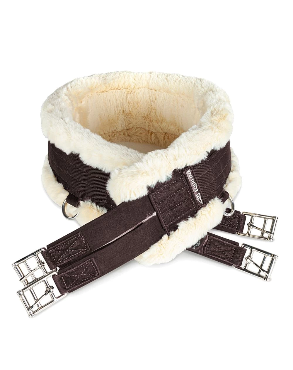 Beautiful and practical fur girth made of nylon for training or competition. The girth has a wool lining and is wonderfully soft. This ensures a lot of comfort for your horse. The girth has three rings for attaching auxiliary reins such as a martingale or a draw rein. The girth has elastic on both sides and a buckle with a roller for easy donning.