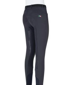 Equiline woman breeches with X-Grip knee patch. They provide the highest stability on the saddle thanks to the new grip control technology granting the maximum comfort and freedom of motion. The Waist-Block system grants an optimal fitting on the Waist. The stretch fastening system on the bottom provides a perfect adherence of the breeches on the leg without the necessity of the Velcro regulation. The sizes in the menu show the Dutch size. The Italian size minus 4 gives the Dutch size.