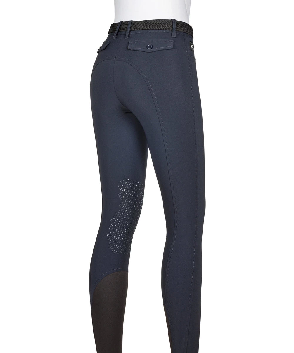 Equiline riding pants in the 4 seasons B-move fabric. This fabric is ultra soft and retains its shape. This keeps the pants long lasting and super comfortable. The breeches have knee grip in an ‘Y’ pattern. On the front are 2 side pockets.