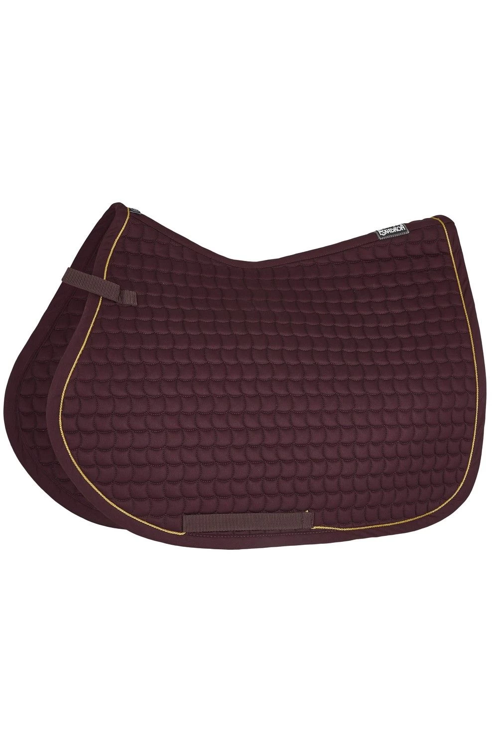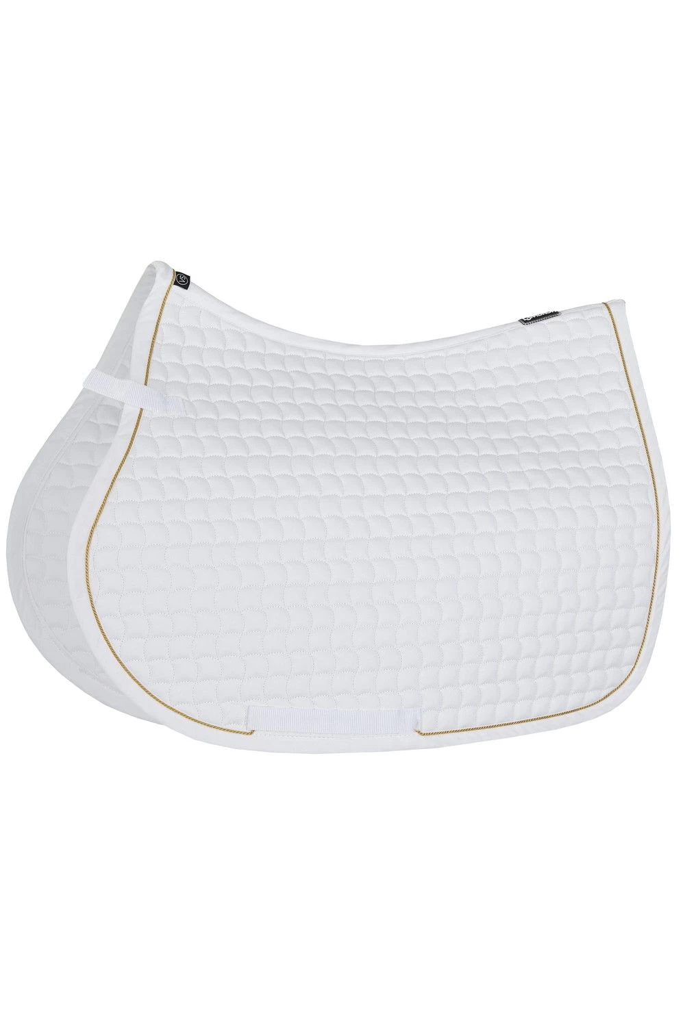 Cotton saddle pad with small gold-colored cord. Trim in the same color as the cover color. Available in several colors and ideal for embroidery with your stable name or logo.
