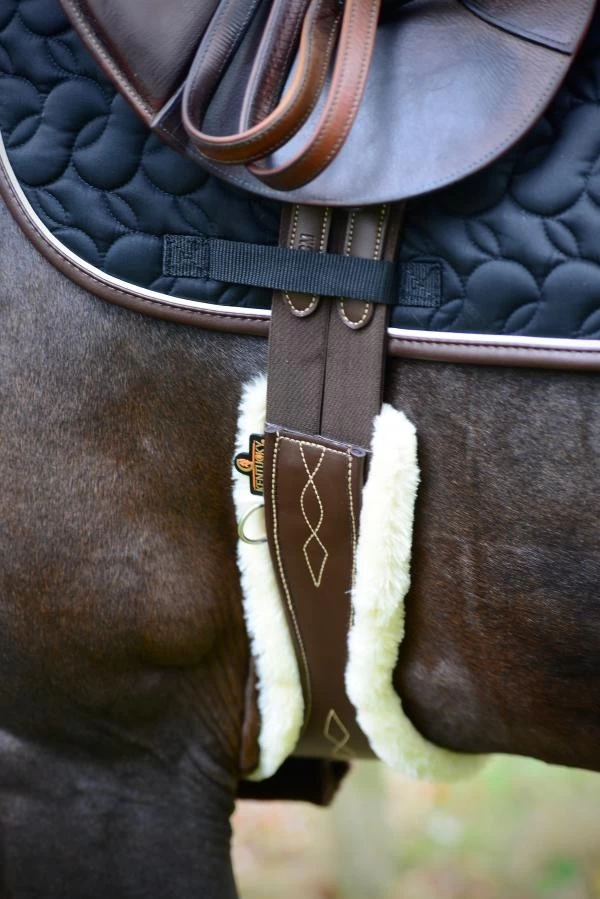 Specially shaped and designed to follow the horse’s natural movement, the Kentucky Horsewear Sheepskin Anatomic Girth offers both comfort and freedom. It relieves the horse’s shoulders and elbows, allowing to breathe better while still limiting the risk of injuries. It features elastics on both ends to equalize pressure as well as three D-rings to accommodate schooling equipment and a buckle to attach the breastplate to the girth. The elastics are very strong and stay firm as they are three double made. The Sheepskin Anatomic Girth features an EVA protective inner. The artificial sheepskin offers excellent cushioning against the skin. The girth is made out of artificial leather, making it 100% animal-friendly and easy to maintain. Kentucky Horsewear developed a Tack Cleaner to clean our artificial leather. Very easy and efficient! The artificial leather doesn’t take in any dirt, sweat or water and is therefore very durable! It does not change color and doesn’t get damaged easily
