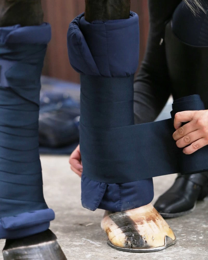Knitted and made out of a smooth fiber, the Repellent Bandages repel shavings and are very easy to clean. They are extremely breathable for better air circulation and feature a heavy duty Velcro Fastening. They can be used with the quilted Stable Bandage Pads – ideal for the stable or for traveling – but also with the Working Bandage Pads.