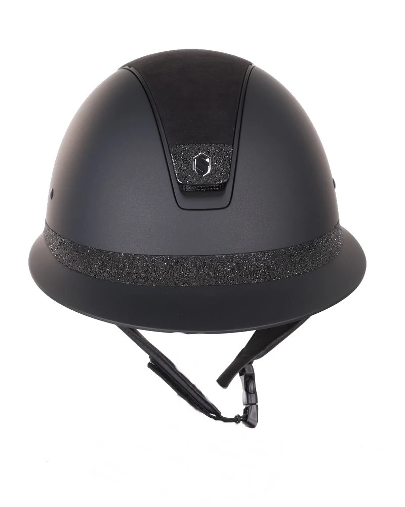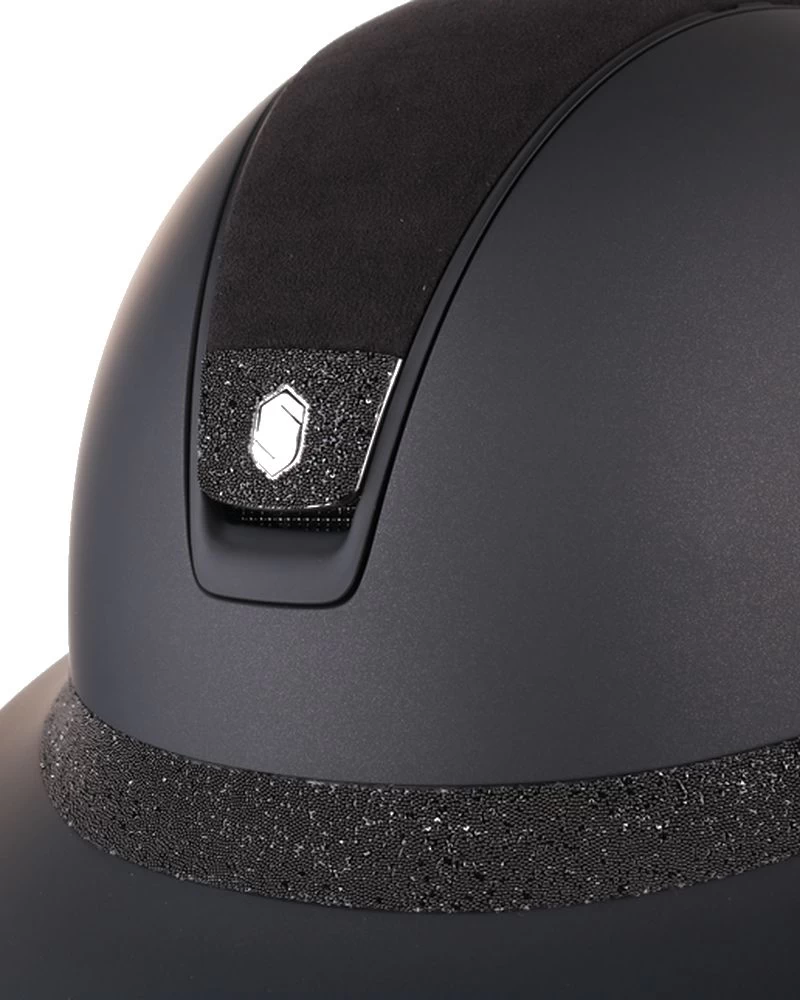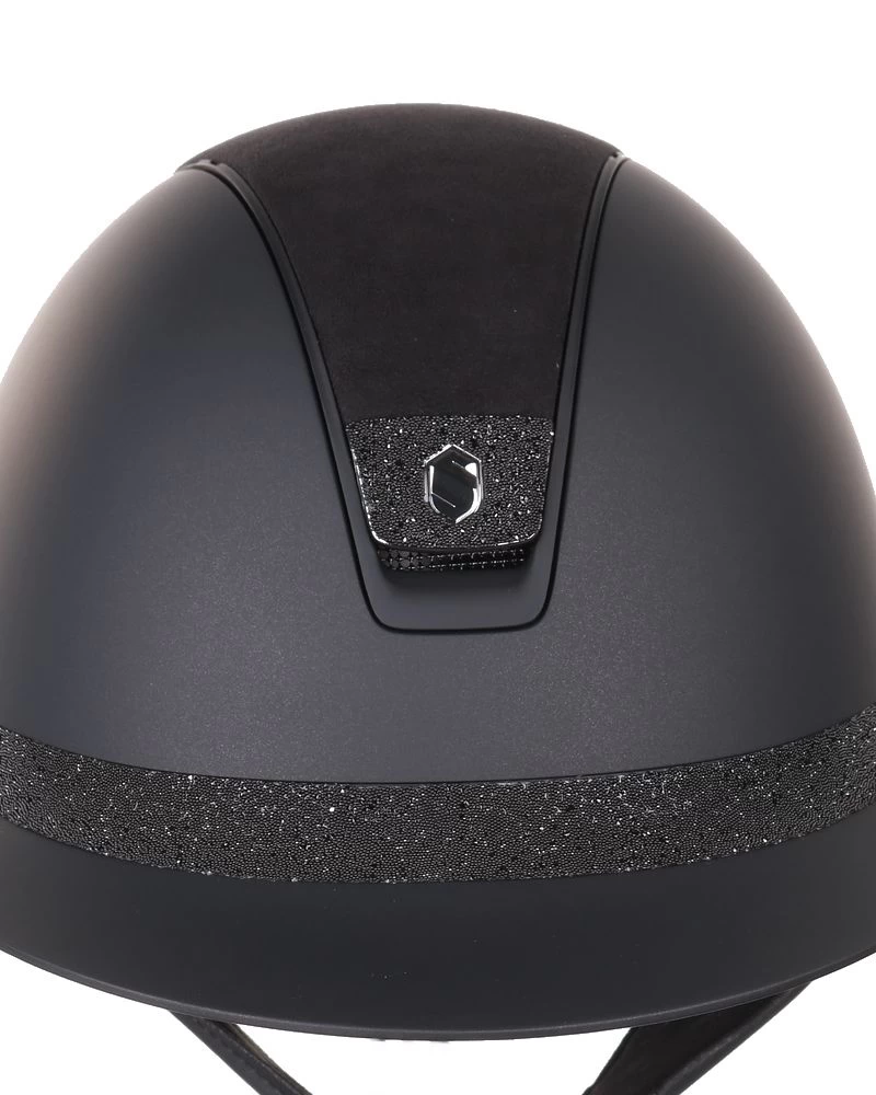 Inspired by women classic riding helmets the Miss Shield Shadowmatt is equipped with a long visor and a customizable frontal band.