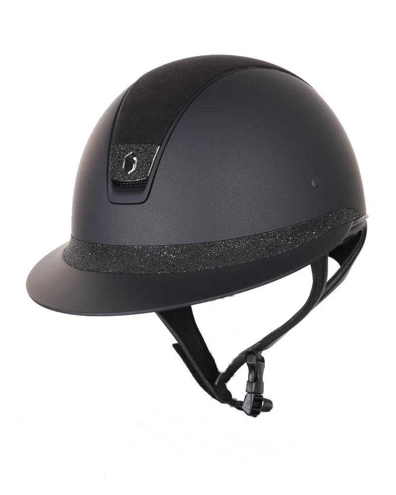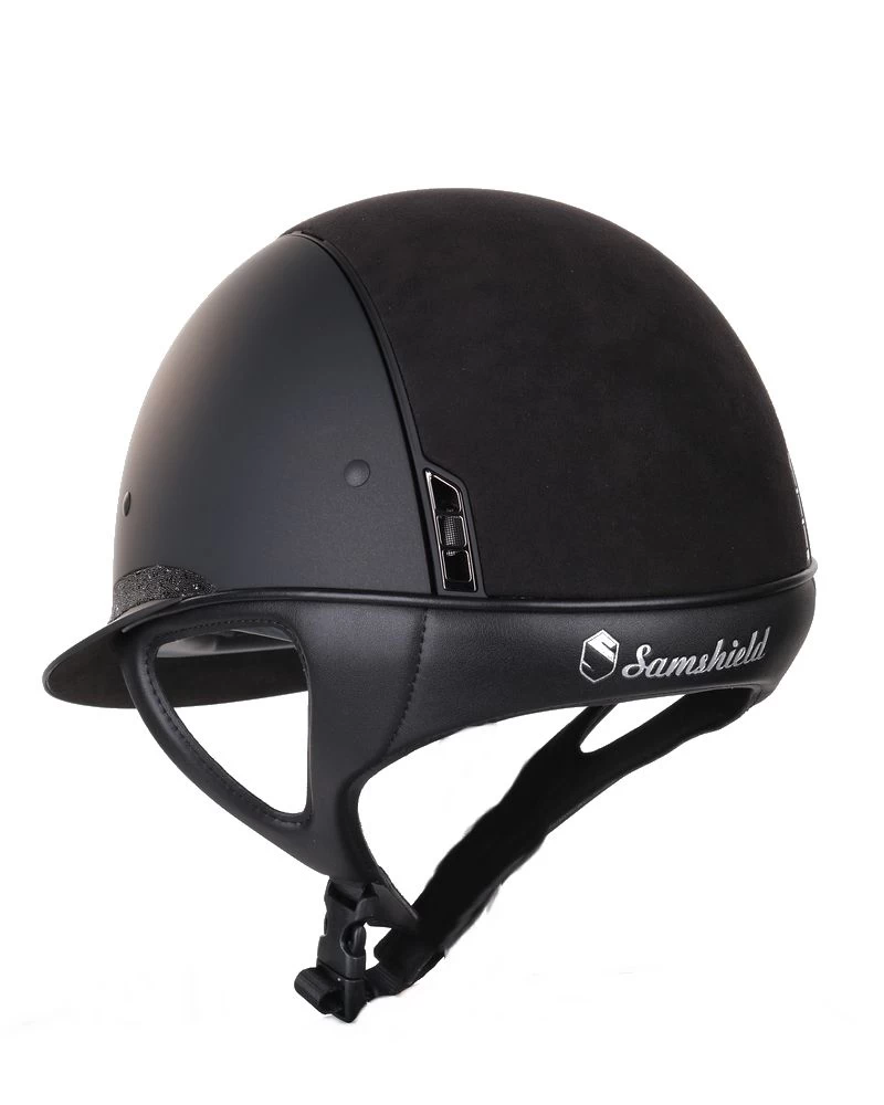 The Miss Shield Shadowmatt helmet is also available in a Shadowglossy and Premium version and can be customized and ordered as desired in the Samshield configurator. The helmet can also be ordered with a dressage chinstrap. This chinstrap is 2.5 cm shorter at the back and provides more room for a hair bun.