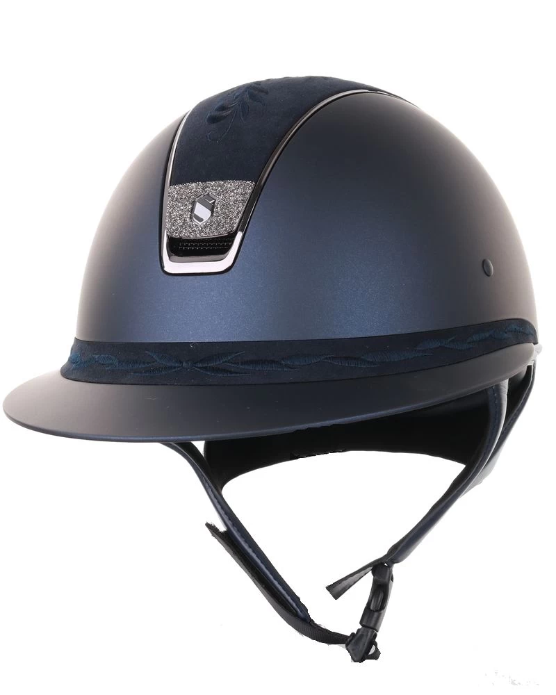 Inspired by women classic riding helmets the Miss Shield Shadowmatt is equipped with a long visor and a customizable frontal band.