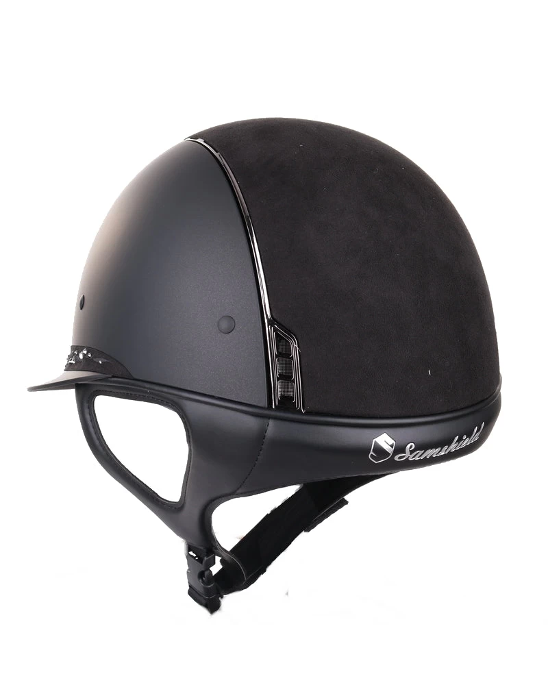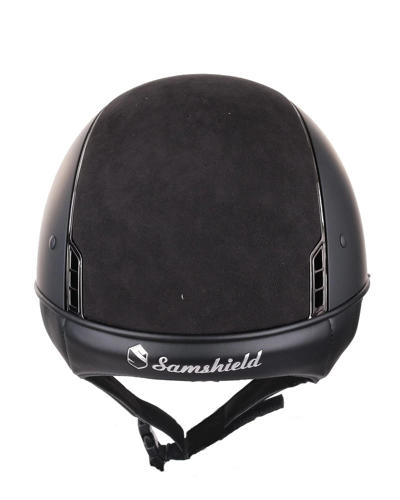 The Miss Shield Shadowmatt helmet is also available in a Shadowglossy and Premium version and can be customized and ordered as desired in the Samshield configurator. The helmet can also be ordered with a dressage chinstrap. This chinstrap is 2.5 cm shorter at the back and provides more room for a hair bun.