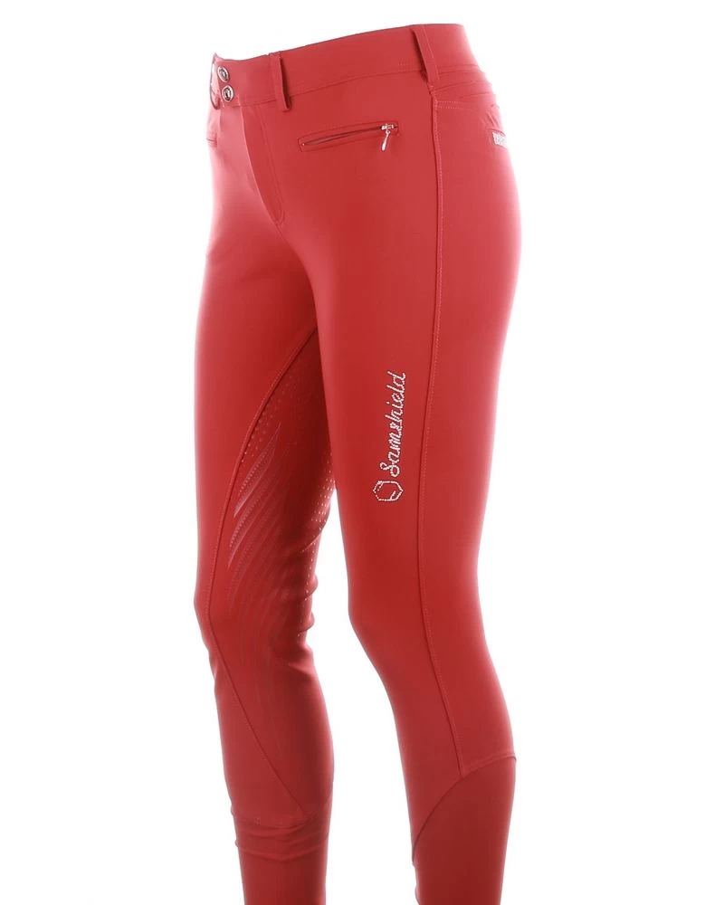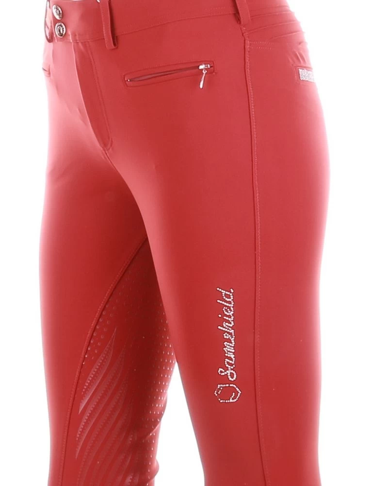 The silicone grip inside the belt prevents the shirt from rising and the compression fabric offers a perfect fit. The Diane breeches protect against ultraviolet rays thanks to the UV treatment. The breeches are decorated with a Samshield blazon made with Swarovski® crystals and with Crystal Fabric Swarovski®, combining femininity, technology and refinement.