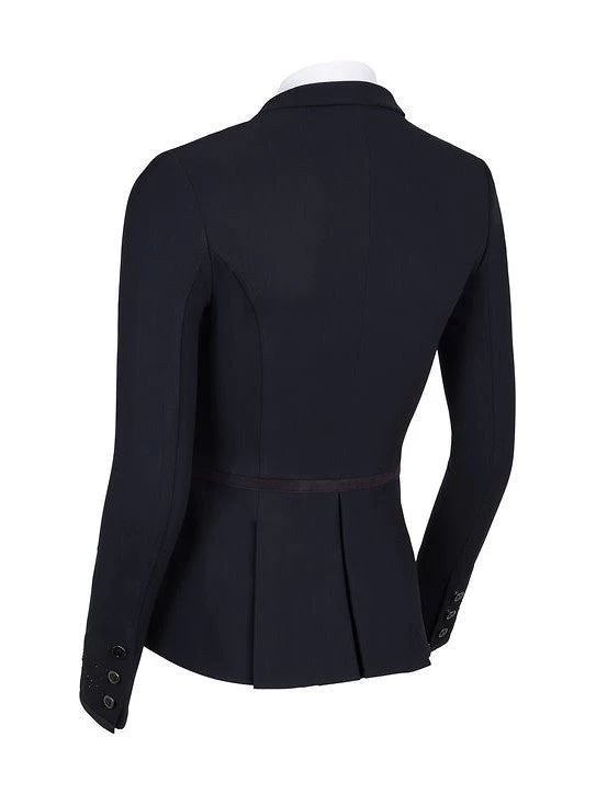 The Victorine competition jacket is designed to provide comfort and technical performance to riders. The tailored fit and asymmetrical cut (front is cut shorter than the back) ensures a perfect fit, elegance and comfort. The Victorine is made of a high breathable technical fabric which brings an excellent fit, freedom of movement, lightness and durability for optimal comfort. The jacket guarantees UV protection thanks to a special construction of the fabric which offers also protects against ultraviolet rays.