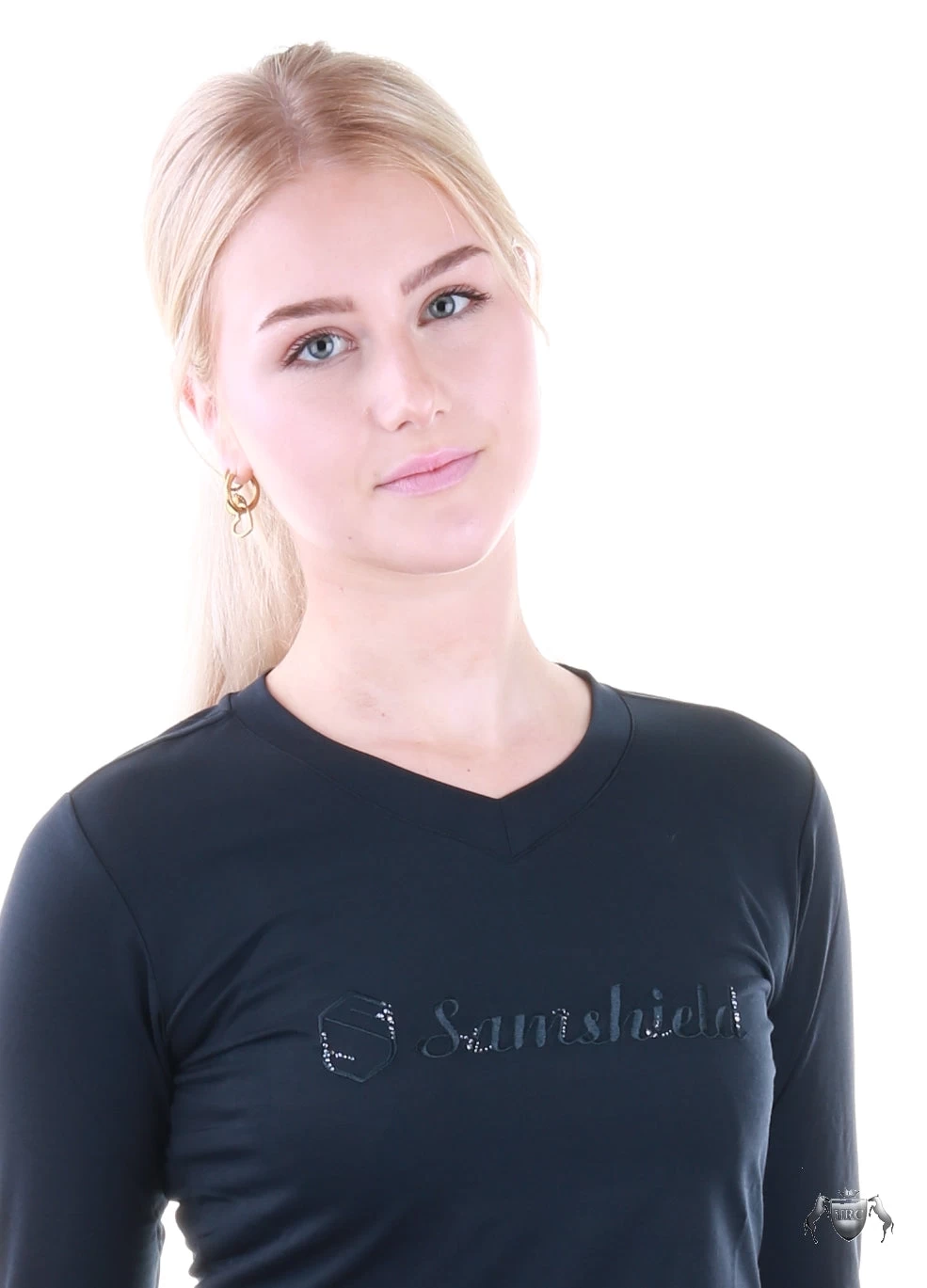 The Samshield Axella Crystal Long Sleeve T-Shirt for women is a captivating blend of elegance and performance. Exuding a touch of glamour, this shirt is decorated with carefully placed crystals along the embroidered Samshield logo.
