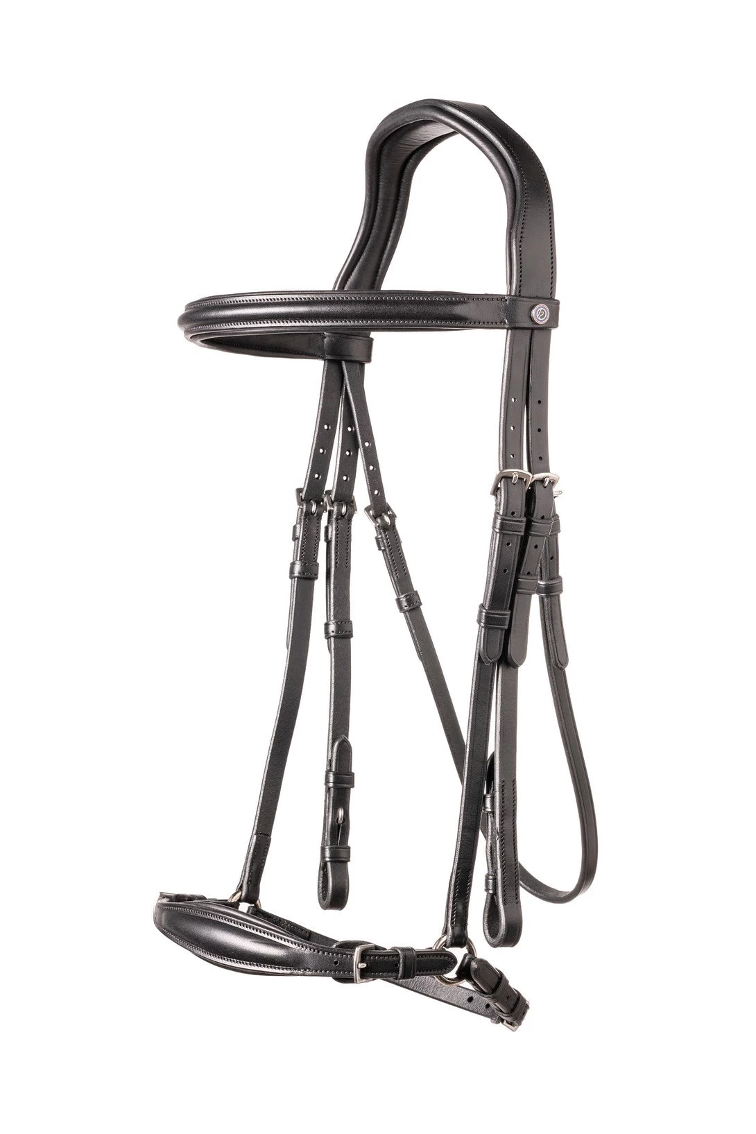 The anatomy of the modern horse has been taken into account in the design of each bridle. As a result, the bridles fit seamlessly with the shapes of the horse’s head, which ensures optimum comfort. In addition, each bridle is equipped with an anatomical headpiece that has been cut back for more freedom at the ears. The padding of the headpiece is soft, but not too thick so that there is direct contact with the horse.