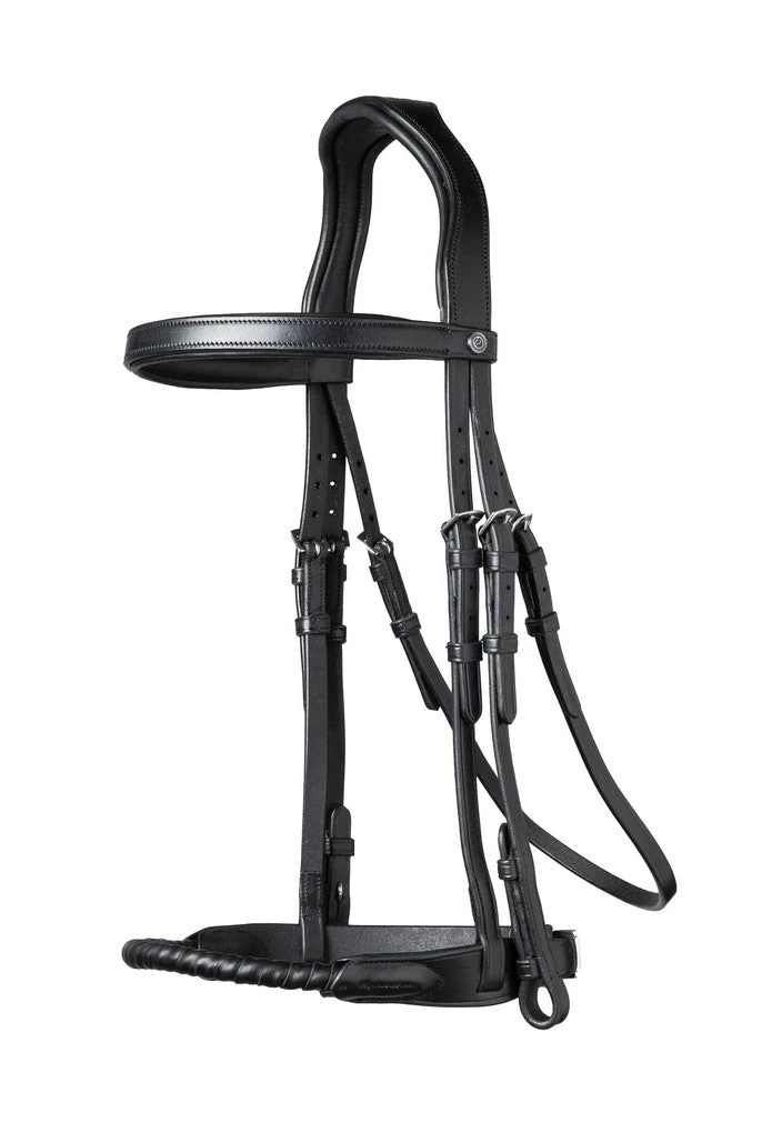 The anatomy of the modern horse has been taken into account in the design of each bridle. As a result, the bridles fit seamlessly with the shapes of the horse’s head, which ensures optimum comfort. In addition, each bridle is equipped with an anatomical headpiece that has been cut back for more freedom at the ears. The padding of the headpiece is soft, but not too thick so that there is direct contact with the horse.