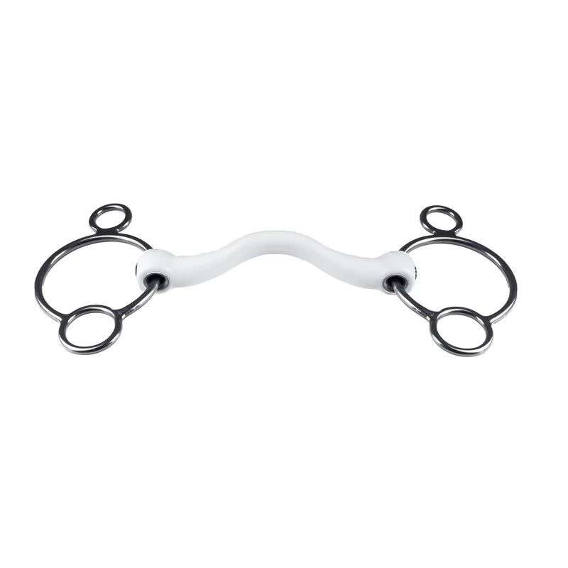 A 2.5 ring bit is a milder version of a 3 ring (pessoa) bit. With this bit a leverage can be created. The lower the reins are placed, the stronger the bit becomes. An ideal bit for horses that are very strong or hold the bit. Compared to the 2.5 eggbut, the loose rings can move loosely so there is more movement in the bit and the rein aid has a more indirect effect.