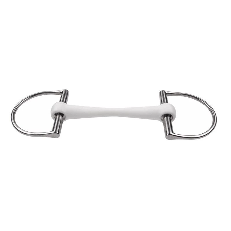 This cheekpiece has a D-shape. The D-rings ensure that the mouthpiece lies calm and stable in the horse’s mouth. The pressure of the cheekpieces against the cheek makes it easier to turn by automatically pushing the horse’s head in the right direction. This makes the bit suitable for young horses. The shape of the cheekpiece makes it less easy to pull the bit through the mouth.