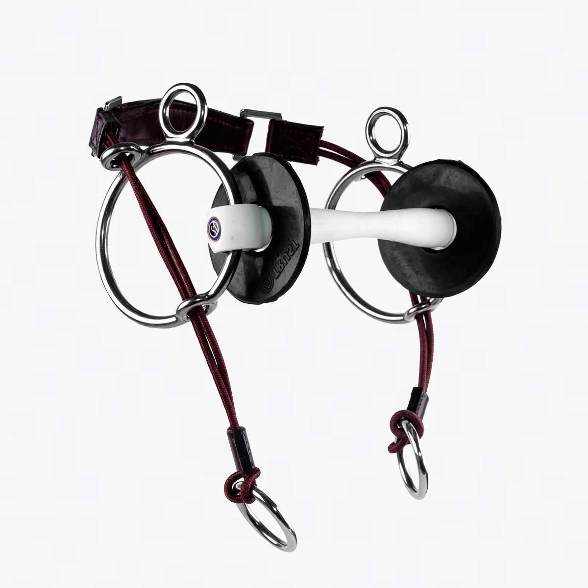 A curb gag is similar to a gag bit but has a different effect. The pressure isn’t behind the ears but on the lower jaw. The string runs under the chin and the cheekpieces are attached to the extra ring at the top. This bit is effective for strong, hot horses and is mainly used by showjumpers. This bit is not suitable for inexperienced riders.