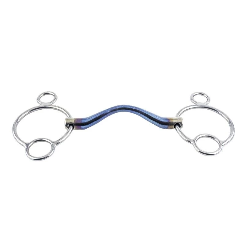 The Sweet Iron bits are made of steel and have a recognizable blue color. Sweet Iron will rust when it comes into contact with (air) humidity, the surface rust tastes sweet and naturally stimulates the saliva production. This will cause the horse to salivate more, which in turn will encourage a better acceptance of the bit.