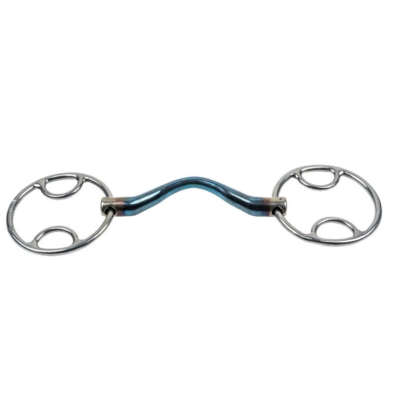 The Sweet Iron bits are made of steel and have a recognizable blue color. Sweet Iron will rust when it comes into contact with (air) humidity, the surface rust tastes sweet and naturally stimulates the saliva production. This will cause the horse to salivate more, which in turn will encourage a better acceptance of the bit.
