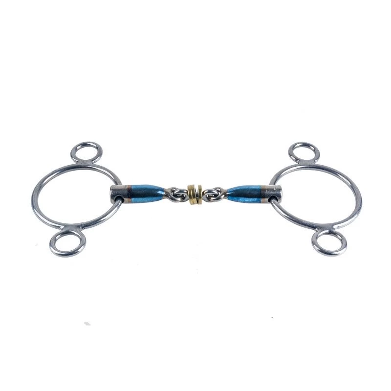 The mouthpiece with rings is a variant of the double-jointed bit. The rings in the middle stimulate the horse to play with the bit. This increases the tongue activity so that the horse will produce more saliva and the jaws can relax more.