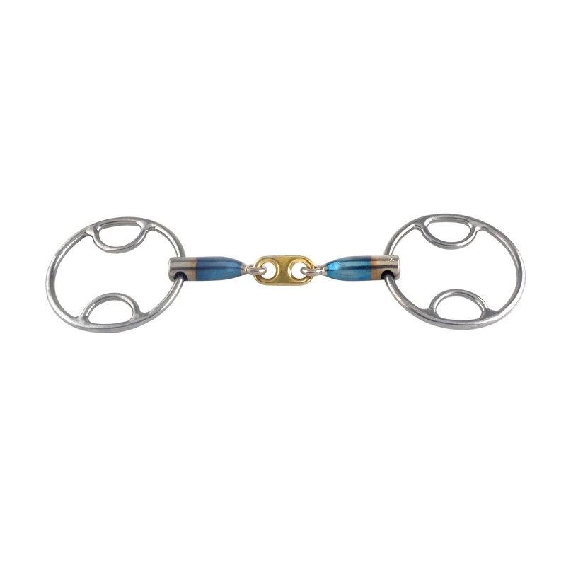 The Sweet Iron bits are made of steel and have a recognizable blue color. Sweet Iron will rust when it comes into contact with (air) humidity, the surface rust tastes sweet and naturally stimulates the saliva production. This will cause the horse to salivate more, which in turn will encourage a better acceptance of the bit.