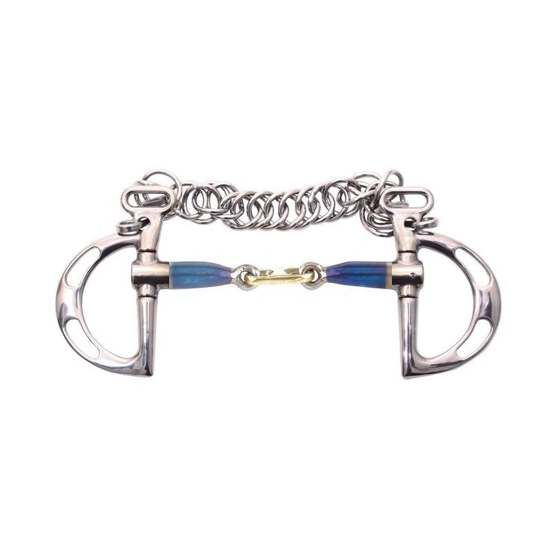 The Sweet Iron bits are made of steel and have a recognizable blue color. Sweet Iron will rust when it comes into contact with (air) humidity, the surface rust tastes sweet and naturally stimulates the saliva production. This will cause the horse to salivate more, which in turn will encourage a better acceptance of the bit.