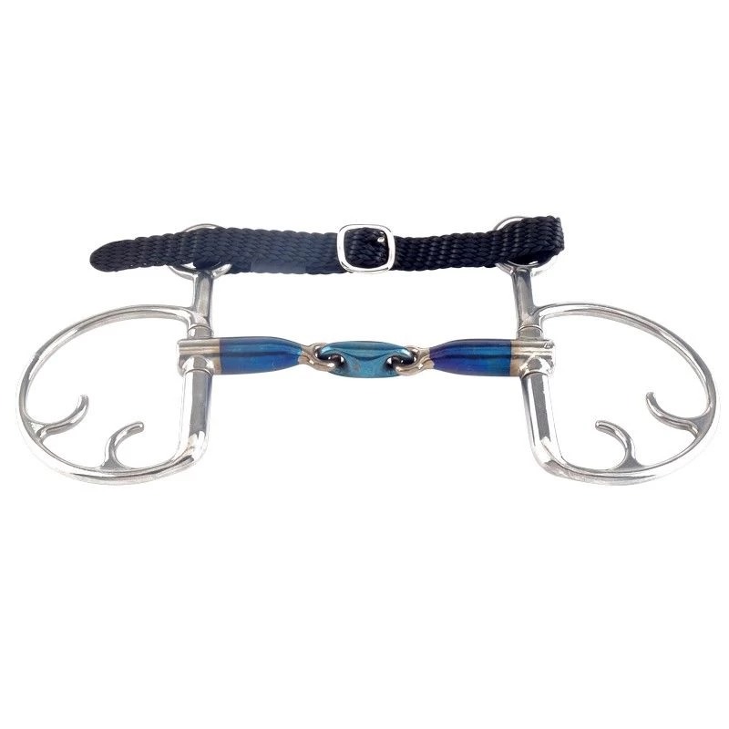 The Sweet Iron bits are made of steel and have a recognizable blue color. Sweet Iron will rust when it comes into contact with (air) humidity, the surface rust tastes sweet and naturally stimulates the saliva production. This will cause the horse to salivate more, which in turn will encourage a better acceptance of the bit.