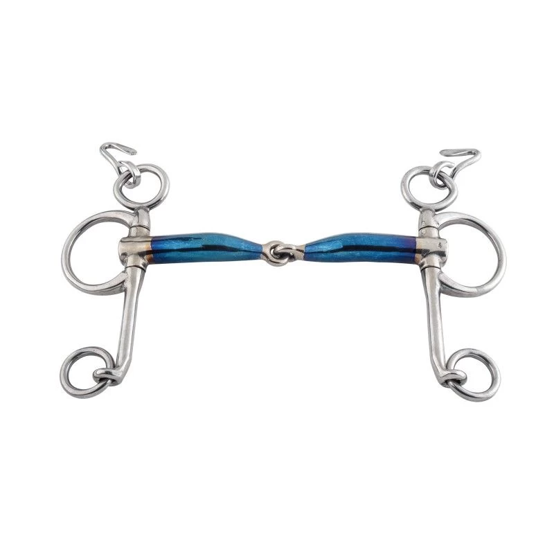 The Sweet Iron bits are made of steel and have a recognizable blue color. Sweet Iron will rust when it comes into contact with (air) humidity, the surface rust tastes sweet and naturally stimulates the saliva production. This will cause the horse to salivate more, which in turn will encourage a better acceptance of the bit.