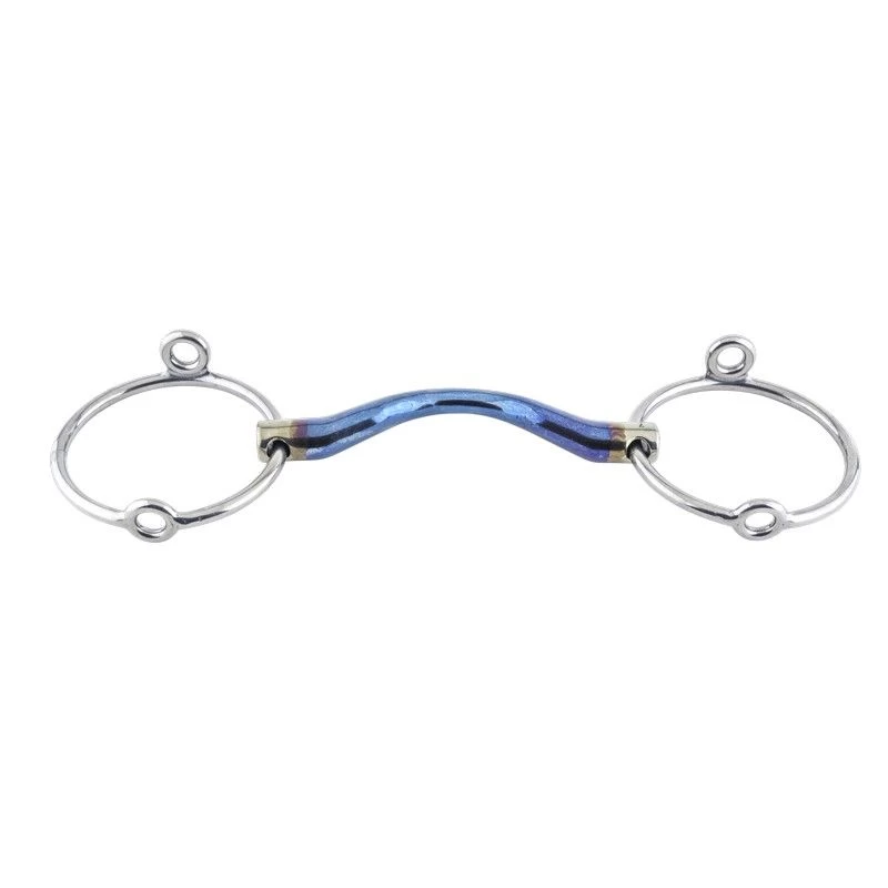The Sweet Iron bits are made of steel and have a recognizable blue color. Sweet Iron will rust when it comes into contact with (air) humidity, the surface rust tastes sweet and naturally stimulates the saliva production. This will cause the horse to salivate more, which in turn will encourage a better acceptance of the bit.