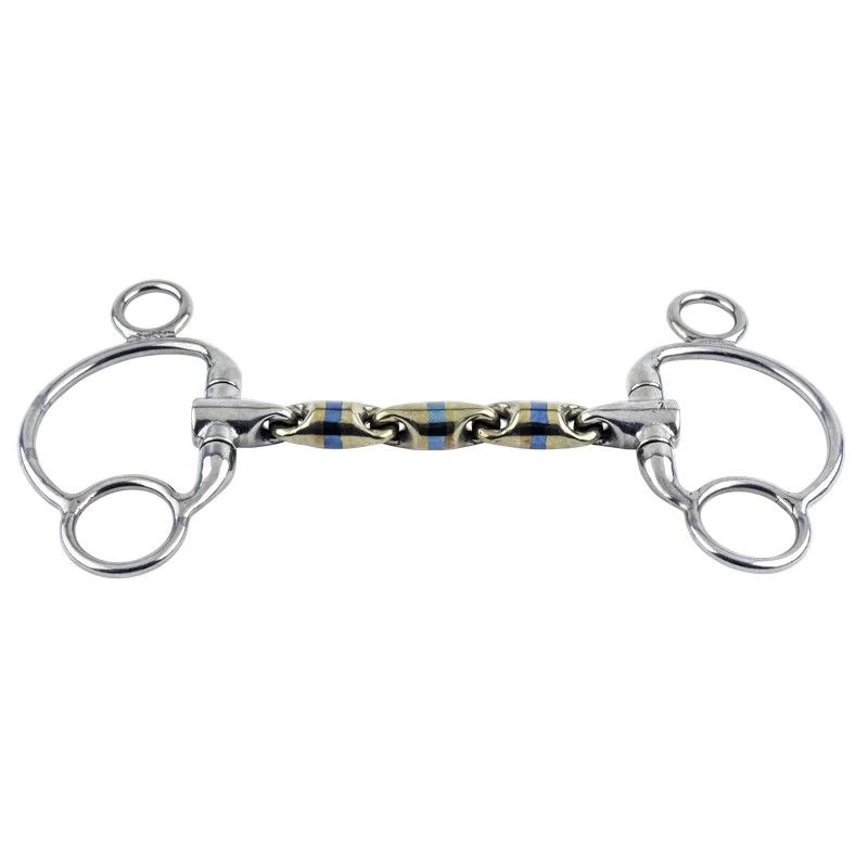 A waterford mouthpiece consists of a series of rounded links. It is a flexible bit that forms towards the horse’s mouth and creates an even pressure. It can move in all directions making it difficult for the horse to lean on the bit so that the rider retains proper control. This bit is not suitable for inexperienced riders. In soft hands this mouthpiece is friendly but with a strong hand the bit can be sharp.