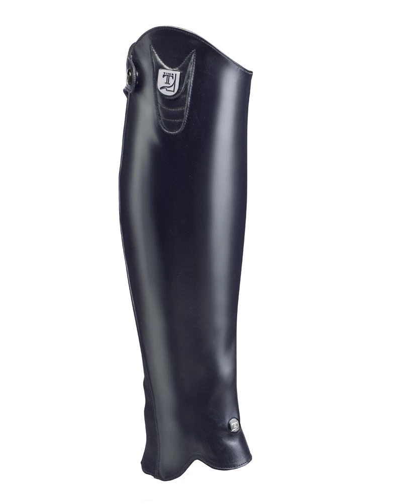 Tucci half chaps Harley. Beautiful calf leather half chaps. This model is inspired by motorcycle boots and fits very nicely with the jodhpur shoes model Harl. With a press stud you can attach the chaps to the shoes so that it stays in place. The half chaps have an elastic insert at the back for a nice tight fit.