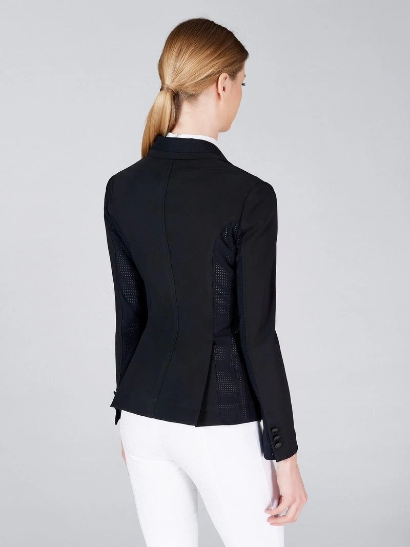 Barcellona competition jacket from Vestrum is an unlined ladies competition jacket. The light fabric is ideal for the warmer seasons and perfect for competitions. The side panel has mesh fabric for extra ventilation. The riding jacket has a zipper under the button row in the front and a double back vent.