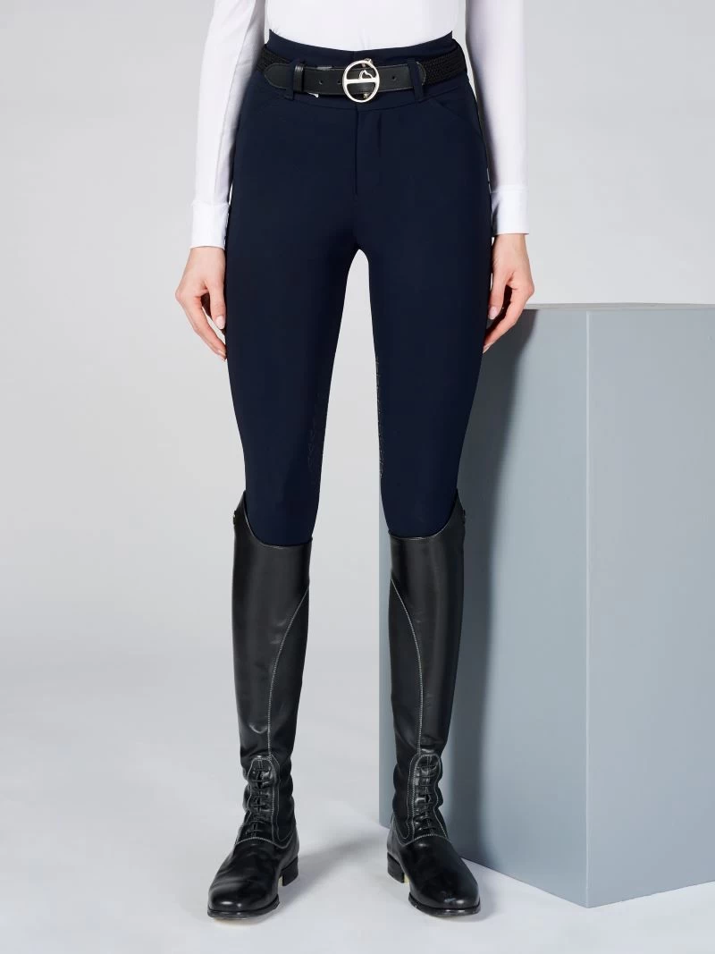 Women’s riding breeches Molveno made in bi-elastic fabric that guarantees a perfect fit and comfortable usability. V-formed Knee grip for extra stability in the saddle. These breeches have a zip and button closure system on the front.