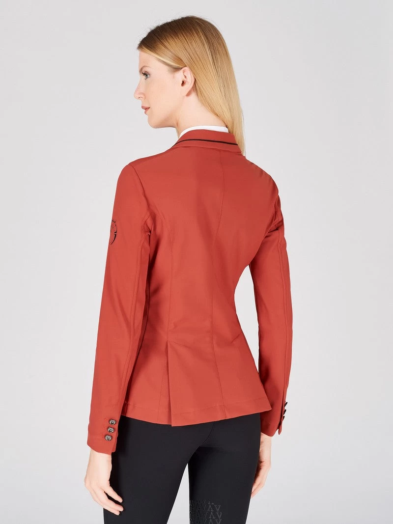 Kyoto is an unlined women’s competition jacket and is a high-end classic one. The light knitted fabric is ideal for the warmer seasons and perfect for competitions. At the same time, it’s soft enough to guarantee freedom of movement for every body shape, including curvy ones. Contrast orange piping details along the collar and the pocket flaps, Vestrum logo in orange on the left shoulder part, zip under the button closure front.